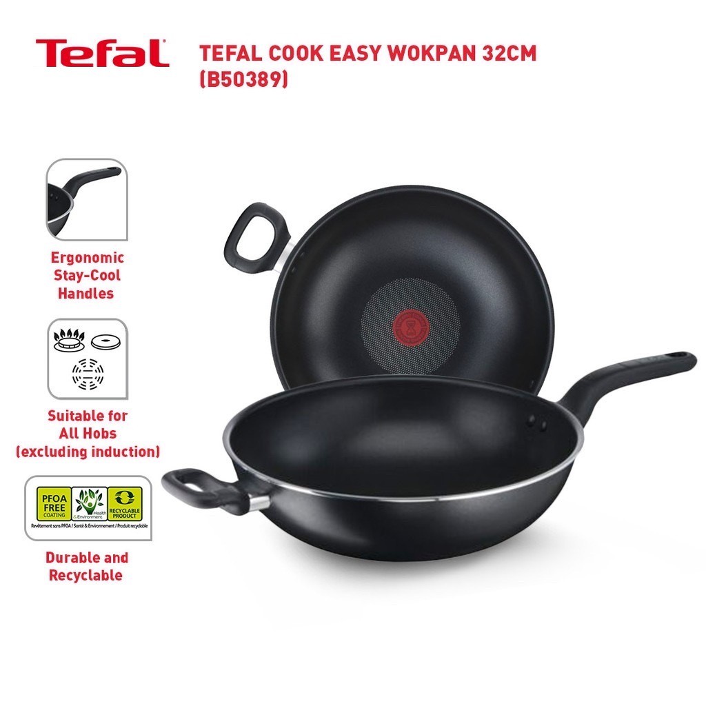 Tefal Cook Easy Wokpan 32cm A70698 Tefal Cookware Classic Wokpan 32cm Kuali Memasak Anti Calar Periuk Dapur Shopee Malaysia